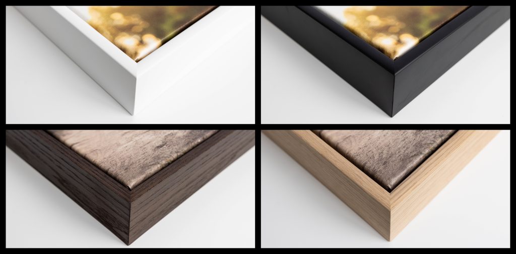 Our frames are created with hand-cut double-profiled meranti hardwood, available in a 30mm or 40mm profile. Our stretcher bars are manufactured in house also from meranti, not cheap pine. The unique profile allows the frame to sit flush against the wall.