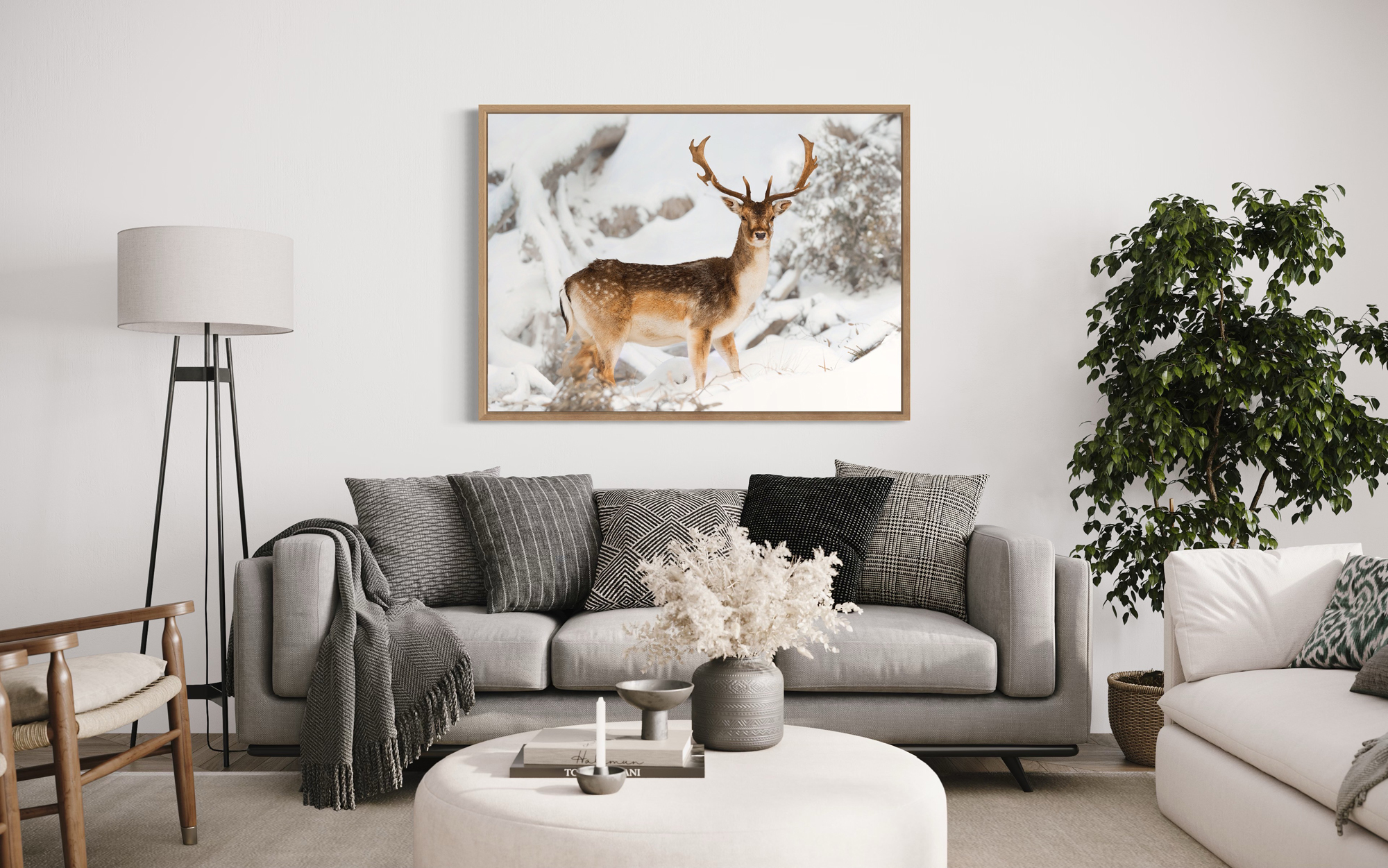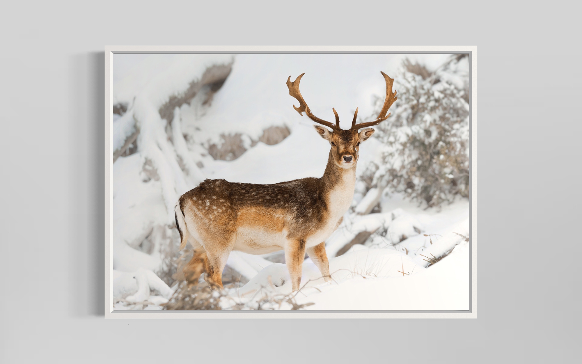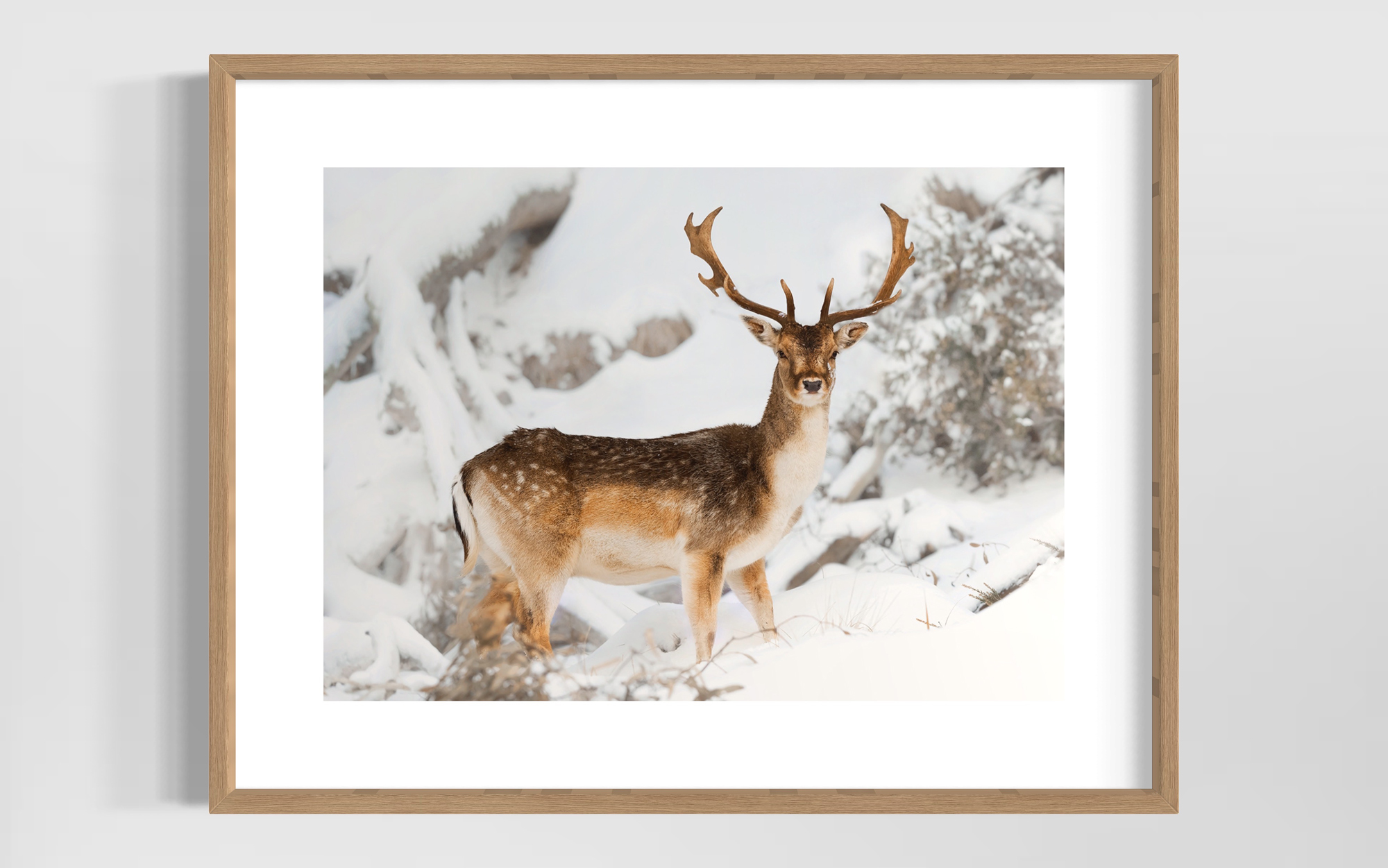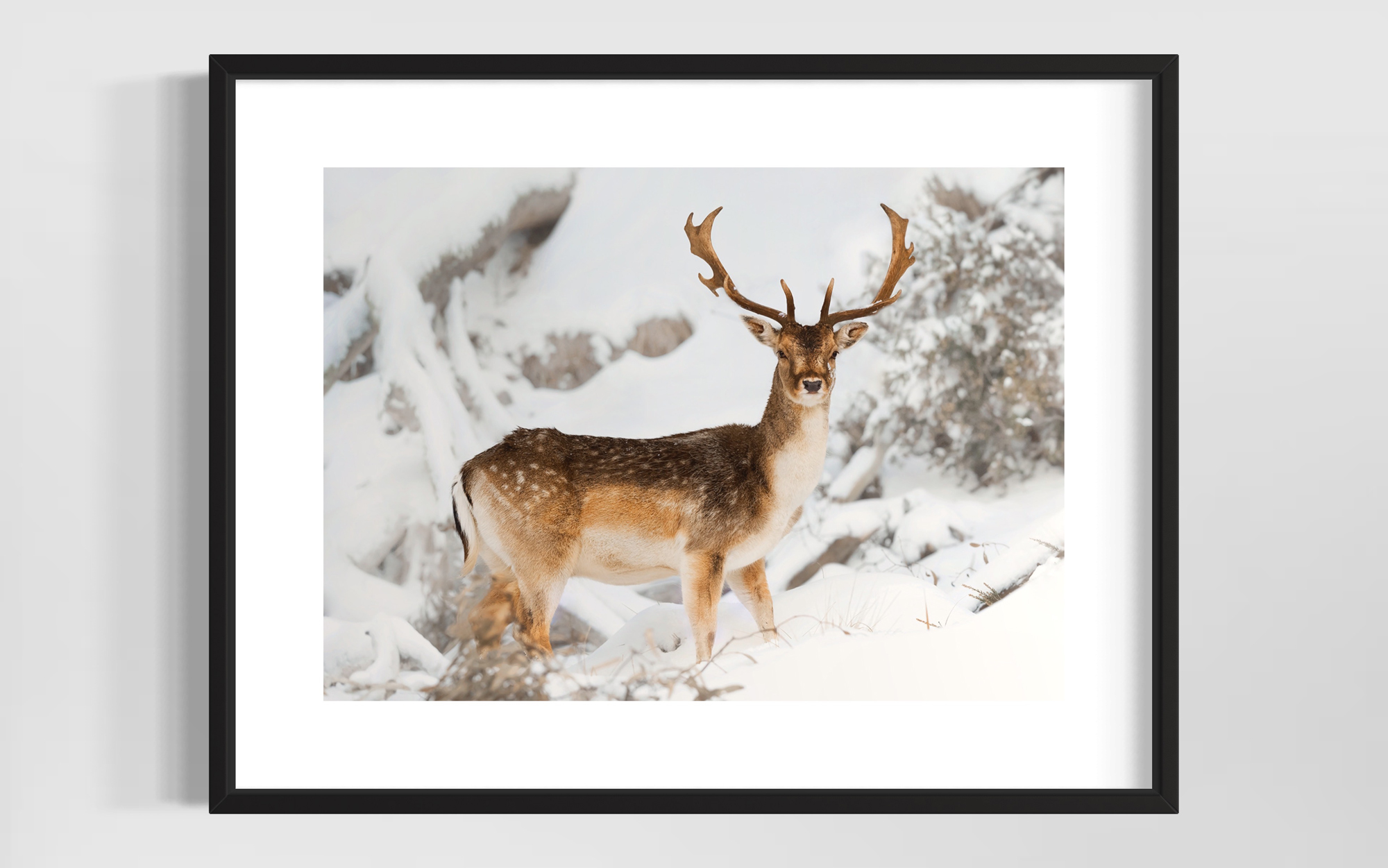 A shy and timid deer stopped to check out the light ruffling noises made in the snow by a man with a camera.