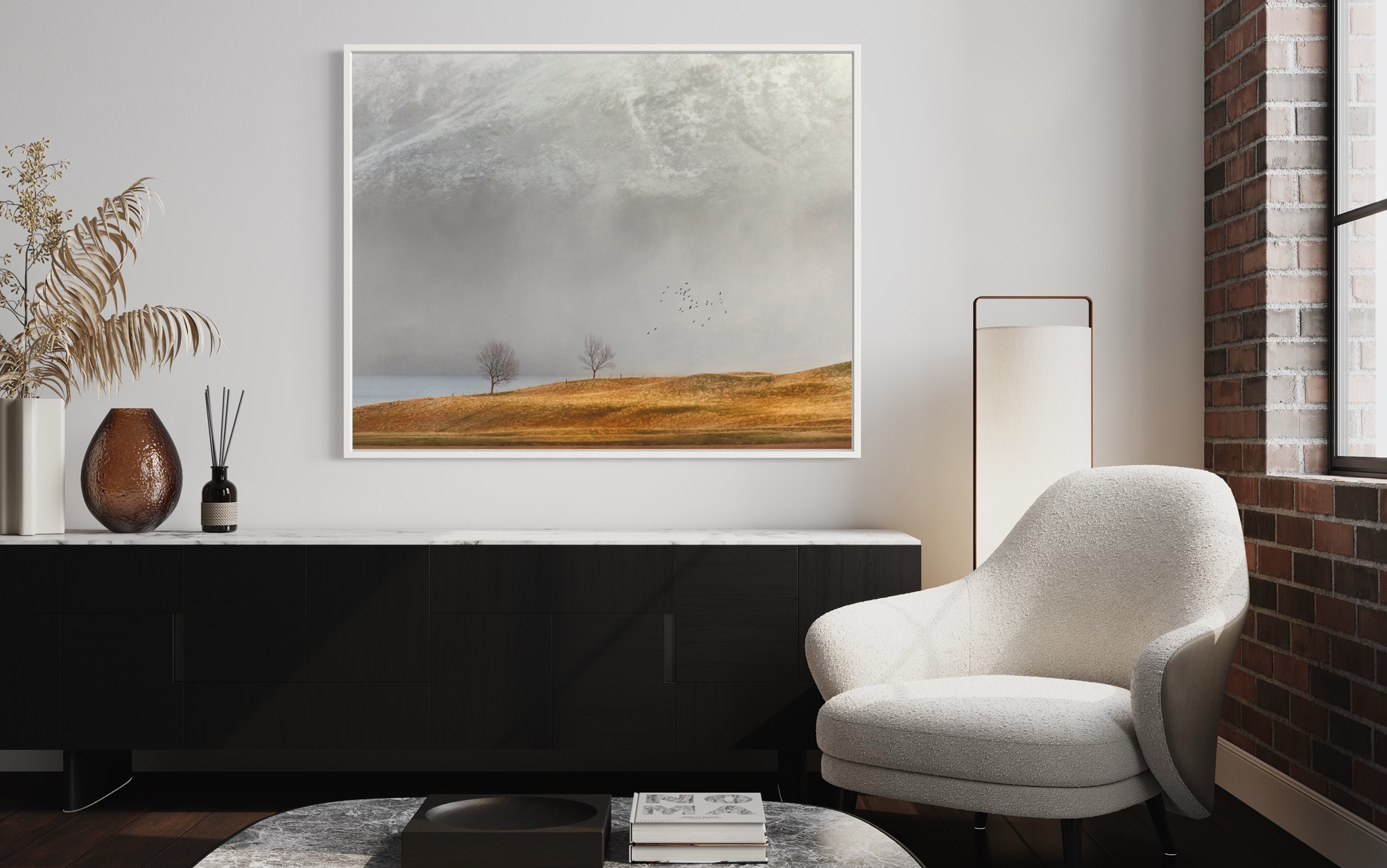 Finished in a matted frame or box framed canvas. Various colours and sizes available.